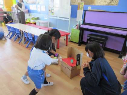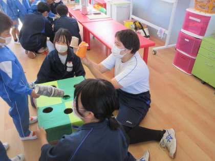 11月20日(月)もりや幼保園での保育実習 その3 公開日 2023/11/20 更新日 2023/11/20 お知らせ 3年生の保育実習の様子の続きです。 園児との会話も弾みます!ゲームを通して、楽しい一時を過ごす生徒たちです!
