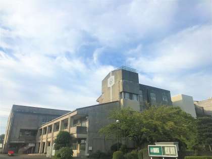 9月15日(水)青空の見える曇りの朝,御所ケ丘中学校です