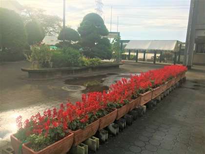 雨上がりですが,青空が少しだけ見える朝となりました。雲の感じが秋を感じさせます。また,正門前のキンモクセイのさわやかな香りが,さらに秋を感じさせてくれます。