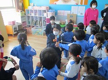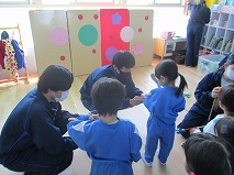 11月21日(火)もりや幼保園での保育実習 その3 公開日 2023/11/21 更新日 2023/11/21 お知らせ こちらの組では、的当てをしています。弓矢に興味津々、でもきちんと並んで順番を待つ姿がかわいらしいですね。