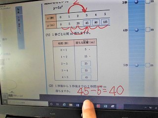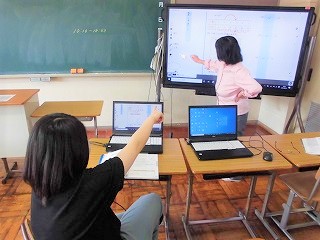 3年生の数学の授業の教材研究の様子です。授業を振り返り,次のよりよい授業のため,授業の進め方や板書等について研修しています。自己研修です。どの教科でも普通に行われています。仲間達のために…