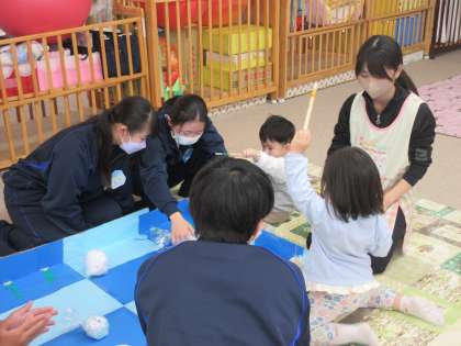 園児とのふれあいを笑顔で楽しみながら、活動する3年生。