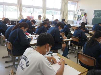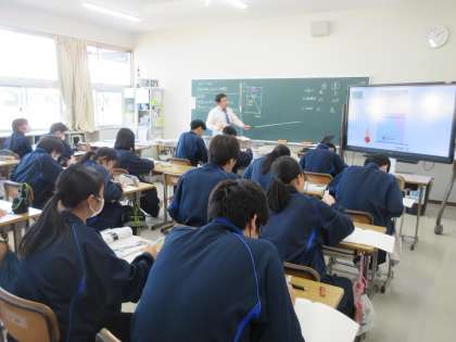 11月27日(月)今日の授業の風景 その3 公開日 2023/11/27 更新日 2023/11/27 お知らせ 3年生の理科の授業です。 「力学的エネルギーの保存」をテーマに学習に取り組んでいました。イラストを活用しながら、位置エネルギーと運動エネルギーの関係を考える生徒たち。5時間目も集中して課題解決を目指しています!!