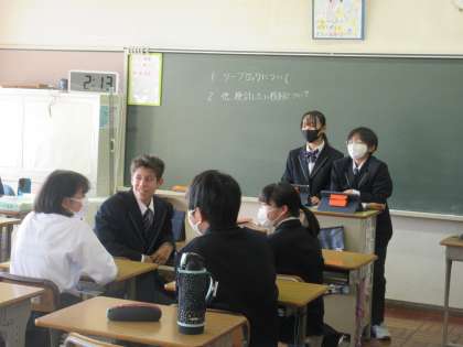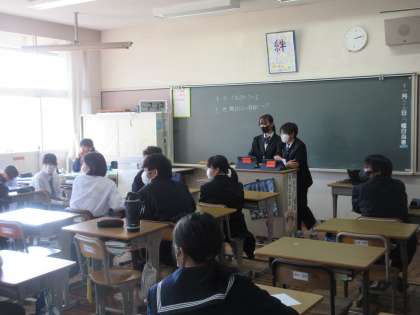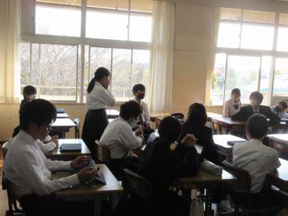 11月27日(月)今日の授業の風景 その4 公開日 2023/11/27 更新日 2023/11/27 お知らせ 1年生の学級活動の時間です。 「校則」について、話合いを進めていました。ちょうど教室を訪問した時は、髪型について考えを交換していました。友達の発表を体を向けて聞く姿。素晴らしいです!よりよい学校生活の実現に向けて、話合いを深めていってほしいです!