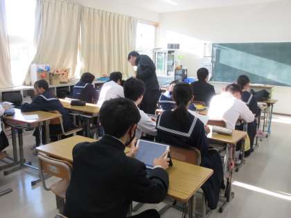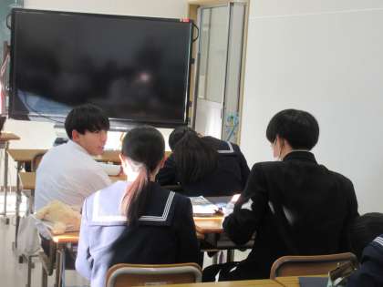 3年2組の学級旗紹介です。3年2組の教室に朝の時間に訪問すると、登校後の準備が終わり、近くの友達と談笑する生徒が多く、和やかな雰囲気を感じました。今日もよい1日のスタートが切れているようです。