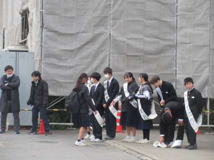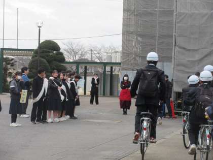 12月5日(火)朝の様子 その2 公開日 2023/12/05 更新日 2023/12/05 お知らせ 生徒会演説会を直前に控え、生徒会の選挙運動も活気に満ちていました。今日も、生徒たちの生き生きとした声を聞き、本校の1日のスタートが気持ちよく切れています!