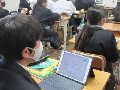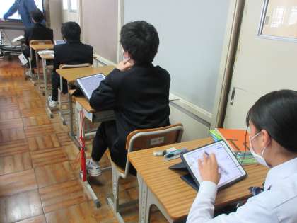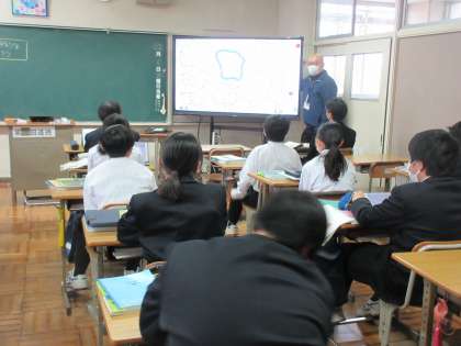12月5日(火)今日の授業の風景 その2 公開日 2023/12/05 更新日 2023/12/05 お知らせ 1年生の社会科の授業です。 「アフリカ州は、なぜ国際的な支援が必要か」をテーマに学習を進めていました。タブレットに映し出されたアフリカ州の地図の国境線に注目して、テーマに向けて追究への話合いが行われていました。進んで自分の考えを発表する1年生。頑張っていました!