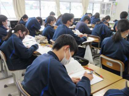 12月5日(火)今日の授業の風景 その5 公開日 2023/12/05 更新日 2023/12/05 お知らせ 3年生の数学科の授業です。 「三平方の定理」について学習を進めています。直角三角形3つの辺の長さとの関係について、ノートに丁寧に図を描きながら、学習を進める生徒たち。根気強く1つ1つの問題に取り組む姿が見られています。