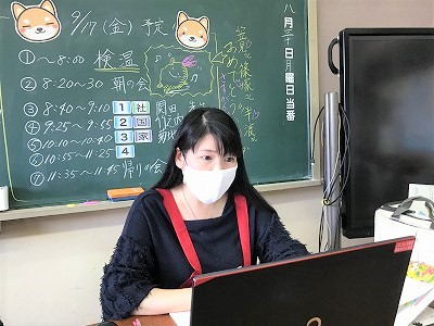 帰りの会では,今日の振り返りや明日の予定,オンライン授業を受ける際の注意点の確認等がありました。また,外で運動する際の確認事項もありました。体つくりのために安全や周囲の状況を考えながら運動しましょう!