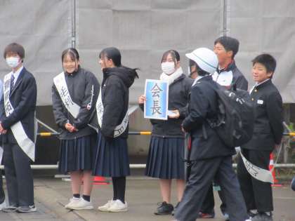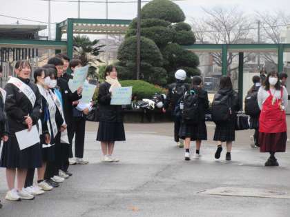 12月6日(水)朝の様子 その2 公開日 2023/12/06 更新日 2023/12/06 お知らせ 生徒会選挙、当日を迎えました。正門付近では、登校時刻に合わせて、最終の選挙運動が行われていました。今日も活気のある声が響き合う本校の朝です。