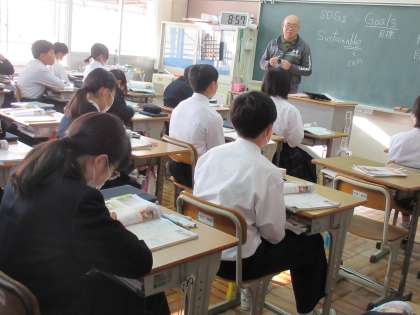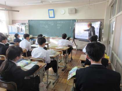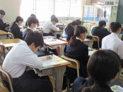 「世界の発展に向けた課題」をテーマに学習を進めていました。教科書に示された「世界の乳児死亡率」の地図を見て、真剣な表情でその状況をイメージする生徒たち。世界が抱える課題について、みんなで一緒に考えていきたい内容です。