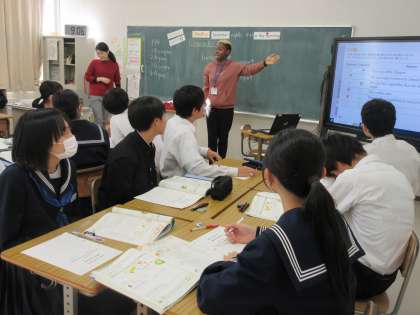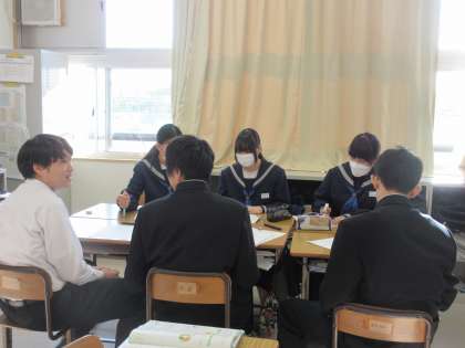 12月8日(金)今日の授業の風景 その5 公開日 2023/12/08 更新日 2023/12/08 お知らせ 3年生の英語科の授業です。 「ディベートをしよう」というテーマのもと、学習が進められていました。英語で相手の意見を受けて、自分の主張を伝える取組をします。国産野菜がよいか、輸入野菜がよいかについて、英語でやりとりをする3年生。頑張っています!