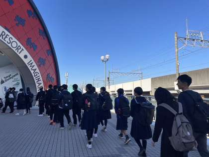 2年生の生徒たちは、舞浜駅に着きました。東京ディズニーランドはもう目の前です!