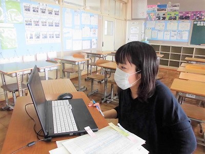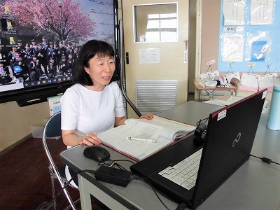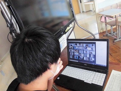 朝の会時,外を見えると太陽が顔を覗かせていました。まるで朝の会に参加している皆さんを迎えているかのようです。
