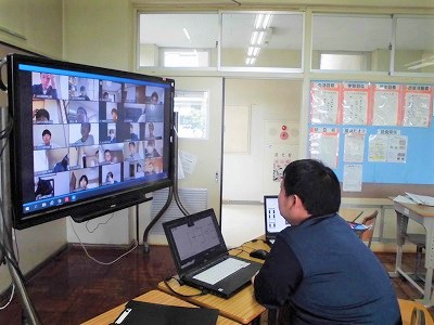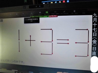 2年生の数学の授業です。今日は発展的な内容に取り組んでいます。画面の向こうで一生懸命問題に取り組んでいる姿が見えます。頑張れ〜!