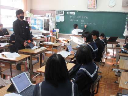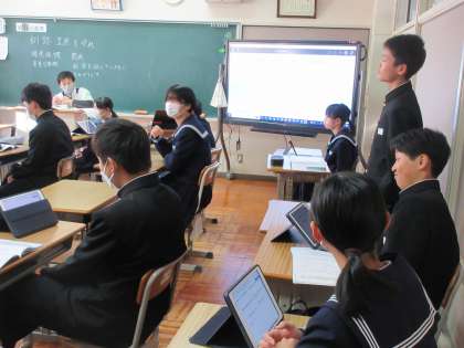 12月13日(水)今日の授業の風景 その4 公開日 2023/12/13 更新日 2023/12/13 お知らせ 2年生の道徳科の授業です。 「釧路湿原を守れ!」という教材文を活用し、ディベートに取り組み、自然を大切にする思いに迫っていました。「開発を求める立場」と「保護を目指す立場」に分かれ、それぞれの立場で意見を述べる生徒たち。活気がありました!発表後のクラス全体の拍手もいいですね!自分の考えを進んで発表する生徒たち。そして、周りの友達も素晴らしいです!