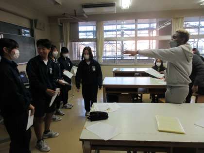 12月13日(水)放課後の様子【イングリッシュクラブ】 公開日 2023/12/13 更新日 2023/12/13 お知らせ 水曜日の放課後は、「イングリッシュクラブ」は行われています。英語にチャレンジしたい生徒が集まり、ALTの先生方と英語でのやりとりに取り組んでいます。英語だけでコミニュケーションをとる時間ですが、参加している生徒たちの頑張りがすごいです!
