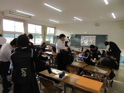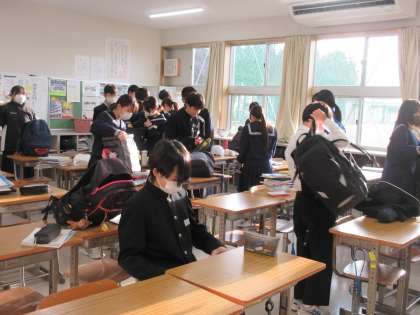 12月14日(木)朝の様子 その2 公開日 2023/12/14 更新日 2023/12/14 お知らせ 3年生は、今日が「学年末テスト(5教科)」です。中学校最後の定期テストです。朝の片づけをてきぱきと行い、テスト前の最終確認をする生徒の姿がたくさん見られました。頑張ってほしいです!!