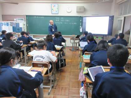 12月15日(金)今日の授業風景 その2 公開日 2023/12/15 更新日 2023/12/15 お知らせ 1年生の社会科の授業です。 北アメリカ州の学習を進めていました。タブレット上の北アメリカ州の白地図に、放牧や酪農、地中海性気候・・・などを書き込む生徒たち。本日、ドジャースの大谷選手の記者会見があることなどにつても触れながら、北アメリカ州の学習のイメージを広げていました。