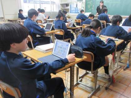 12月15日(金)今日の授業風景 その3 公開日 2023/12/15 更新日 2023/12/15 お知らせ 2年生の社会科の授業です。 「関東地方の産業はどのように発展しているか」について、学習を進めています。ポイントは工業と農業です。データを大切にしながら、自分の力で白地図にまとめ、特徴をつかもうと頑張る生徒たちです!
