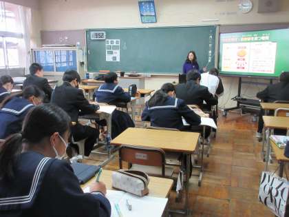 12月19日(火)今日の授業風景 その2 公開日 2023/12/19 更新日 2023/12/19 お知らせ 2年生の理科の授業です。 「放射性物質」をテーマに学習を進めています。放射線、放射能・・・などの言葉の意味を確認しながら学習を進めていました。担当の先生が電子黒板に提示した「放射性物質のイラスト」などを活用し、それぞれの言葉のイメージを広げる生徒たちです。