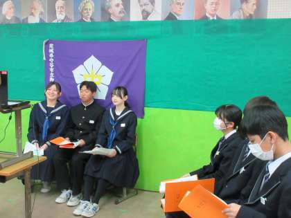 12月19日(火)御所ケ丘中学校区きらめきフォーラム 公開日 2023/12/19 更新日 2023/12/19 お知らせ 令和5年度のテーマは「未来に向かって一人一人のよさを認め合う人間関係づくり」です。守谷高校、御所ケ丘中学校区の3つの小学校、そして本校がオンラインでつながり、実施しました。本校の参加者は新生徒会の皆さんです。初めての仕事に全力で取り組む生徒会役員の生徒たちです!