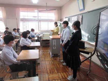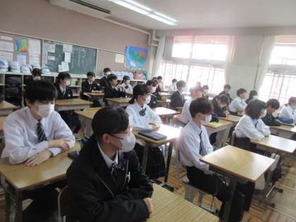 1年生の教室を訪問していると、朝の会の司会をしっかり行う生徒の姿を見かけました。前に立ち、ていねいに進行するところがいいです。また、自席で座っている生徒たちの話を聞く姿勢もいいです。今日も1年生の教室では、1日のよいスタートが切れていました!