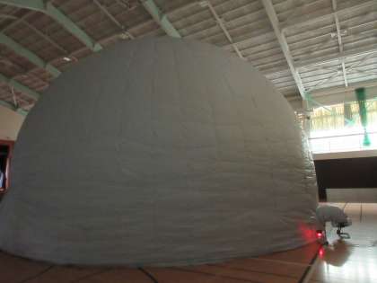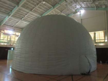 3年生は、移動プラネタリウムの中で理科の学習に取り組んでいます。体育館の中にできたドーム。つくばエキスポセンターの方に来ていただき、ドームがつくられました。中に入って、プラネタリウムを見上げる生徒たち。歓声が聞こえていました!