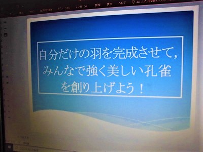 オンライン授業3 公開日 2021/09/21 更新日 2021/09/21 お知らせ 2年生の美術の授業です。今日は,全校創作活動のオリエンテーションです。イメージを膨らませて素晴らしい作品を創りあげましょう!