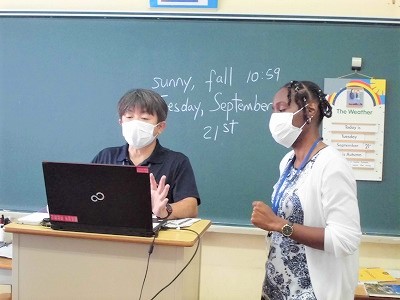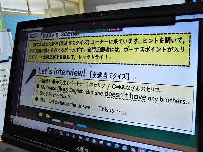 1年生の英語の授業です。仲間達にわかりやすいようなユニバーサルデザインの資料を活用しながら授業が進みます。頑張れ!