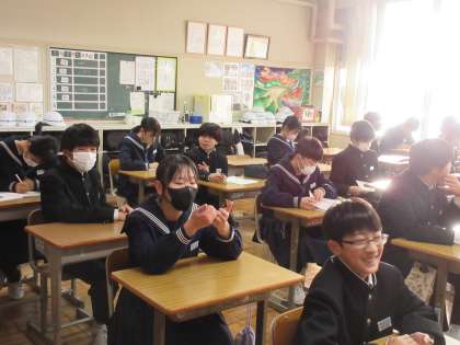 1月10日(水)朝の様子 その2 公開日 2024/01/10 更新日 2024/01/10 お知らせ 朝の会前の2年生の教室の様子です。担任の先生や友達と談笑しながら、ゆったりとした雰囲気で過ごす様子が見られました。安心した気持ちで1日のスタートを切ること、大切なことです。今日もよい雰囲気の中、生徒たちは1日のよいスタートを切ることができています!
