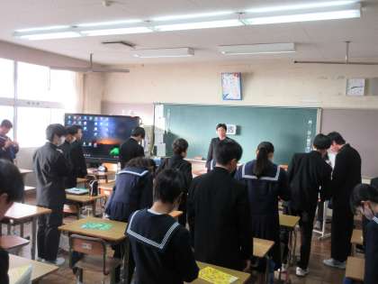 1月10日(水)朝の様子 その3 公開日 2024/01/10 更新日 2024/01/10 お知らせ お隣の2年生の教室を訪問すると、係の活動で積極的に仕事を行う姿や朝の会の司会をきちんと行う生徒たちの姿が見られました。時間を意識して、しっかり行動できること、自分の仕事に積極的に取り組むことができる2年生。素晴らしいです!