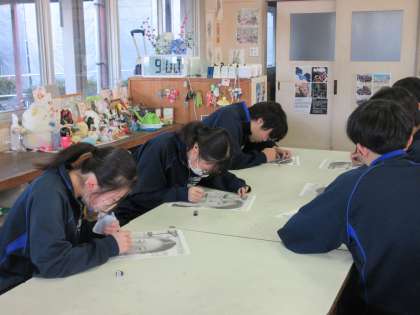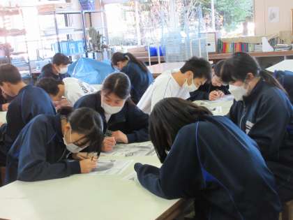 1月10日(水)今日の授業風景 その3 公開日 2024/01/10 更新日 2024/01/10 お知らせ 3年生の美術科の授業です。 これまで学習してきた「日本の伝統文化」「仏画」を生かし、いよいよ、自分の絵にチャレンジしていました。手元に置かれた自分の顔の写真に、目や花のラインを書き込みながら作業を進めていました。これまで積み上げてきたことを生かし、いよいよ、自画像にチャレンジです。すてきな作品がつくり上げられていくことでしょう!