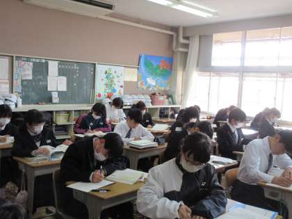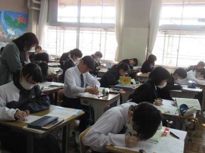 1月10日(水)今日の授業風景 その5 公開日 2024/01/10 更新日 2024/01/10 お知らせ 1年生の国語科の授業です。 「案内文を書こう」をテーマにこれまで学習してきたことをもとに、実際に「案内文」を書き始めているところでした。集中して取り組む1年生。ワークシートにていねいに文章を書いていく姿をみて嬉しく思い、写真を撮ってしましました。分かりやすい案内文が完成しそうです!
