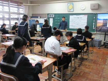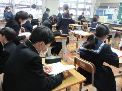 1月11日(木)朝の様子 その3 公開日 2024/01/11 更新日 2024/01/11 お知らせ 1・2年生は、今日・明日と「県学力診断のためのテストが実施されます。2年生の朝の教室を訪ねてみると、教科書や資料を振り返り、テストへ向けて最終確認をする生徒たちの姿が見られました。頑張ってほしいです!