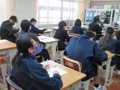 2年生の教室もオンラインでつながっての学習です。きっぱりと「断る」ことの大切さを学びました。薬物乱用防止教室で改めて学んだことをこれからの人生に生かしていきましょう!