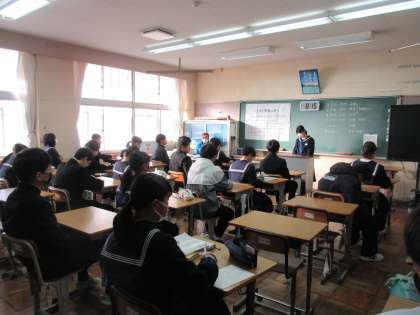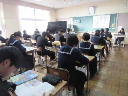 朝の時間の2年生の様子です。今日のテストに向かって、最終確認をしていました。2年生も落ち着いた雰囲気で1日のスタートを切れています。「県学力診断のためのテスト2日目目」頑張っていきます!