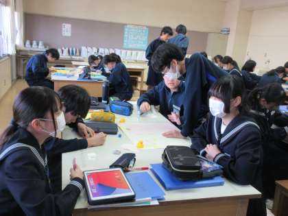 保育実習のまとめの活動に取り組んでいました。幼児と実際に関わった体験から、幼児の特徴についてイメージを膨らませていました。グループでつくった「安心で楽しいおもちゃ」のことなどを振り返りながら、ていねいにまとめの活動に取り組む生徒たちです!