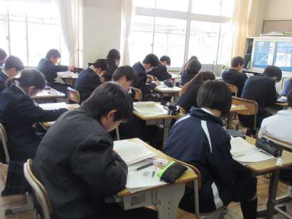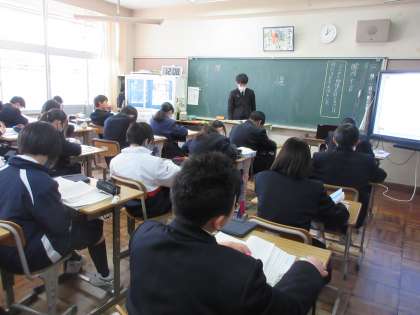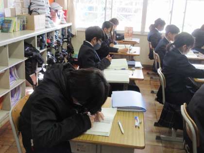 1月12日(金)今日の授業風景 その3 公開日 2024/01/12 更新日 2024/01/12 お知らせ 1年生の国語科の授業です。 「少年の日の思い出」の学習に入りました。ちょうど教室を訪問した時は、教科書の文章の範読を聞いている場面でした。今日のテーマは「登場人物の二人の人物像を捉える」です。線を引きながら、教科書を読む姿が印象的でした。