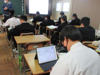 1月15日(月)今日の授業風景 その1 公開日 2024/01/15 更新日 2024/01/15 お知らせ 1年生の社会科の授業です。 「北アメリカ州の学習を進めています。「なぜアメリカ合衆国の移民が多いのか」をテーマに調べ学習に取り組んでいました。思考ツールを活用し、農業の面、工業の面、生活文化の面・・・などから、多面的に考えを広げる生徒たち。タブレットにていねいに調べたことをまとめる姿が印象的でした。