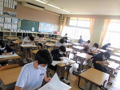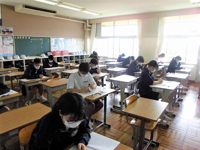 3時間目,数学のテストです。みんな頑張ってます!