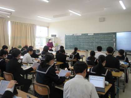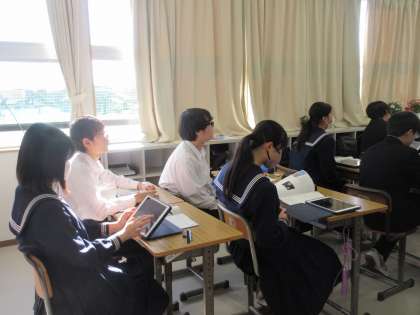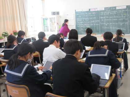 1月22日(月)今日の授業風景 その7 公開日 2024/01/22 更新日 2024/01/22 お知らせ 3年生の英語科の授業です。 英語の長文を読み、問題に答える活動をしていました。ちょうど、教室を訪ねたときは、答え合わせをしているところでした。タブレットの記入した答えが正解かどうかしっかり確認しながら学習を進める生徒たちです。