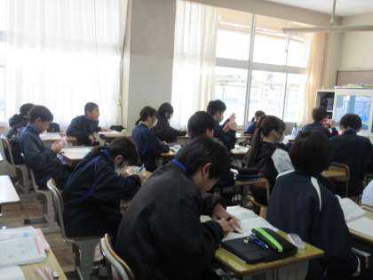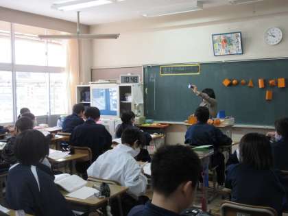 1月24日(水)今日の授業風景 その1 公開日 2024/01/24 更新日 2024/01/24 お知らせ 1年生の数学科の授業です。 立体の実物を見ながら、学習をすすめていました。今日の課題は「平面・直線・点」の関係を掴んでいきます。まずは、それぞれの立体の名前を確認していました。積極的に名前を答える生徒たちの姿を見て、今日も「頑張っているな!」と感じてしまいました。