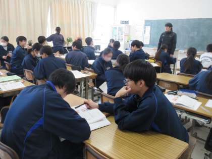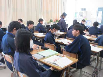 「母集団の数量の推定」について学習をすすめていました。教科書に記載されている白いビーズの中にある少しの赤いビーズ。比の考えを用いて、母集団の数量を考えていきます。今日も一人一人の考えを交流し合いながら、問題の解決を目指しています!