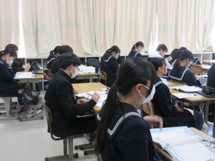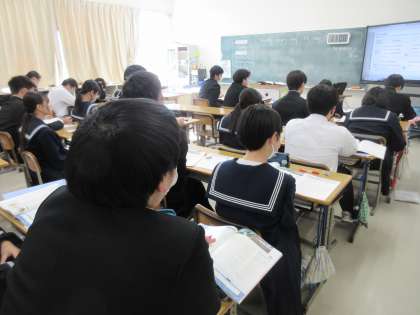 1月25日(木)今日の授業風景 その5 公開日 2024/01/25 更新日 2024/01/25 お知らせ 3年生の英語科の授業です。 「Power Your Future」の長文の読み取りにチャレンジする3年生の生徒たちです。担当の先生の発音に合わせ、英文を読み進める生徒たち。英語で、自分たちの将来に関わるエネルギー問題について考えを広げていました。