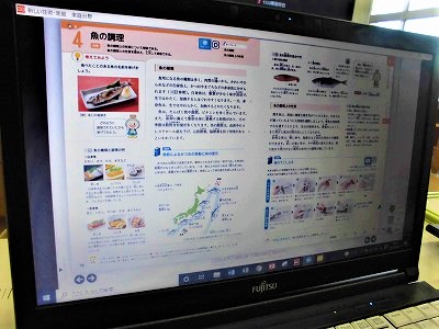 1年生の家庭科の授業です。今日は,魚料理についての学びです。まずは,それぞれが調べ学習に努めています。頑張れ!