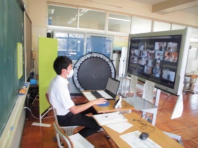 さて,27日(月)から,「同じ空気を吸いながらの学校生活」が再開します。私(校長)からこれまでのオンラインでの学校生活のふり返りと27日からの学校生活に向けてお話をさせていただきました。