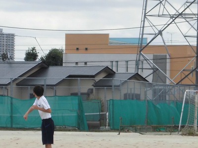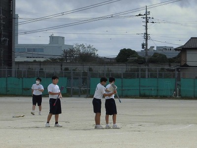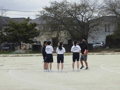 1年生の保健体育の授業です。グラウンドでは,陸上競技に取り組んでいます。ジャベリックスローでは,互いに教え合う姿が見られます。遠くに投げられるようにお互いに考えながら頑張りましょう!