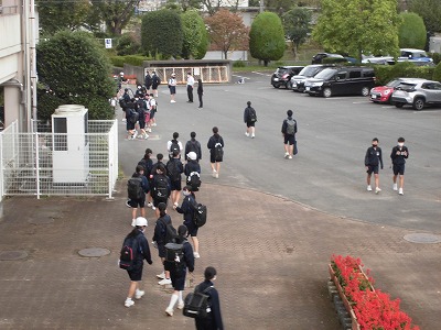 今日から4時間授業,給食なしでの下校となります。明日からは,いったん下校し,再登校しての部活動が14:45から準備・活動,16:15完全下校で実施できます。まずは体を慣らすことから始めましょう。