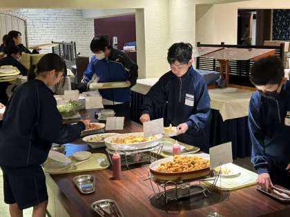 6時より、2日目の夕食が始まりました!バイキングにすっかり慣れたようです。今日も美味しくいただきます!